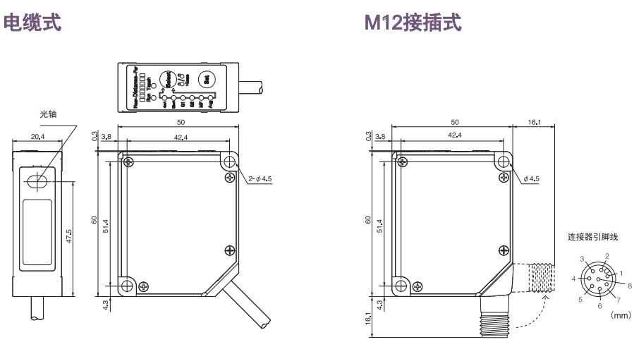 激光位移傳感器CD33系列外型尺寸: