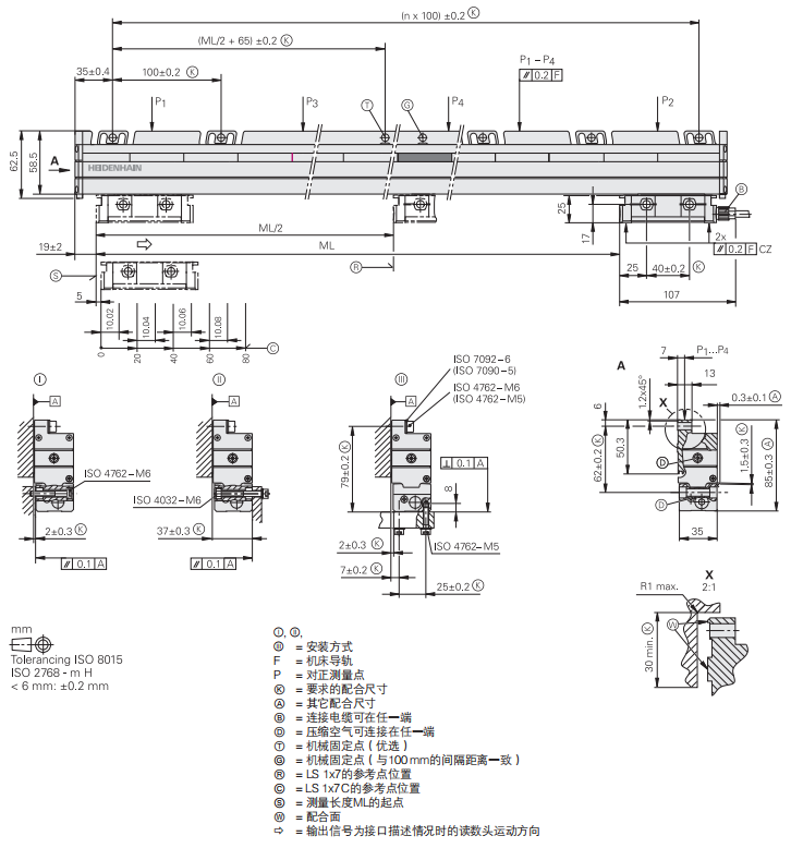 每50 mm可用磁條選擇,標(biāo)準(zhǔn)設(shè)置:中間位置1個(gè)參考點(diǎn)